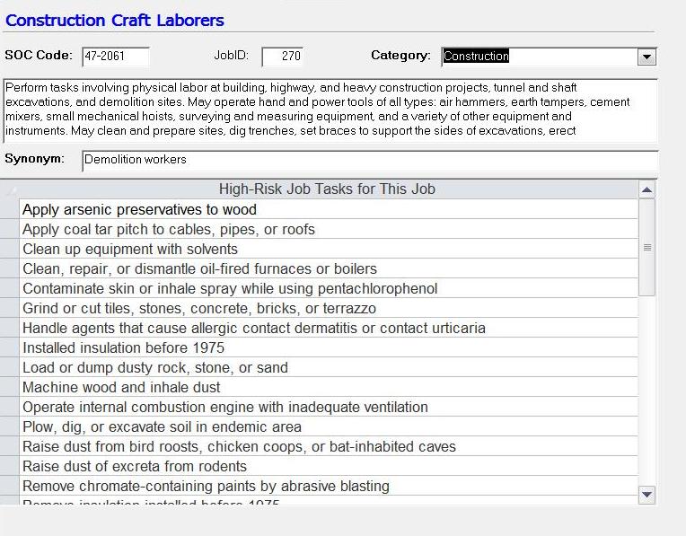 to the disease? Finally, each job task was linked to the appropriate jobs and industries.